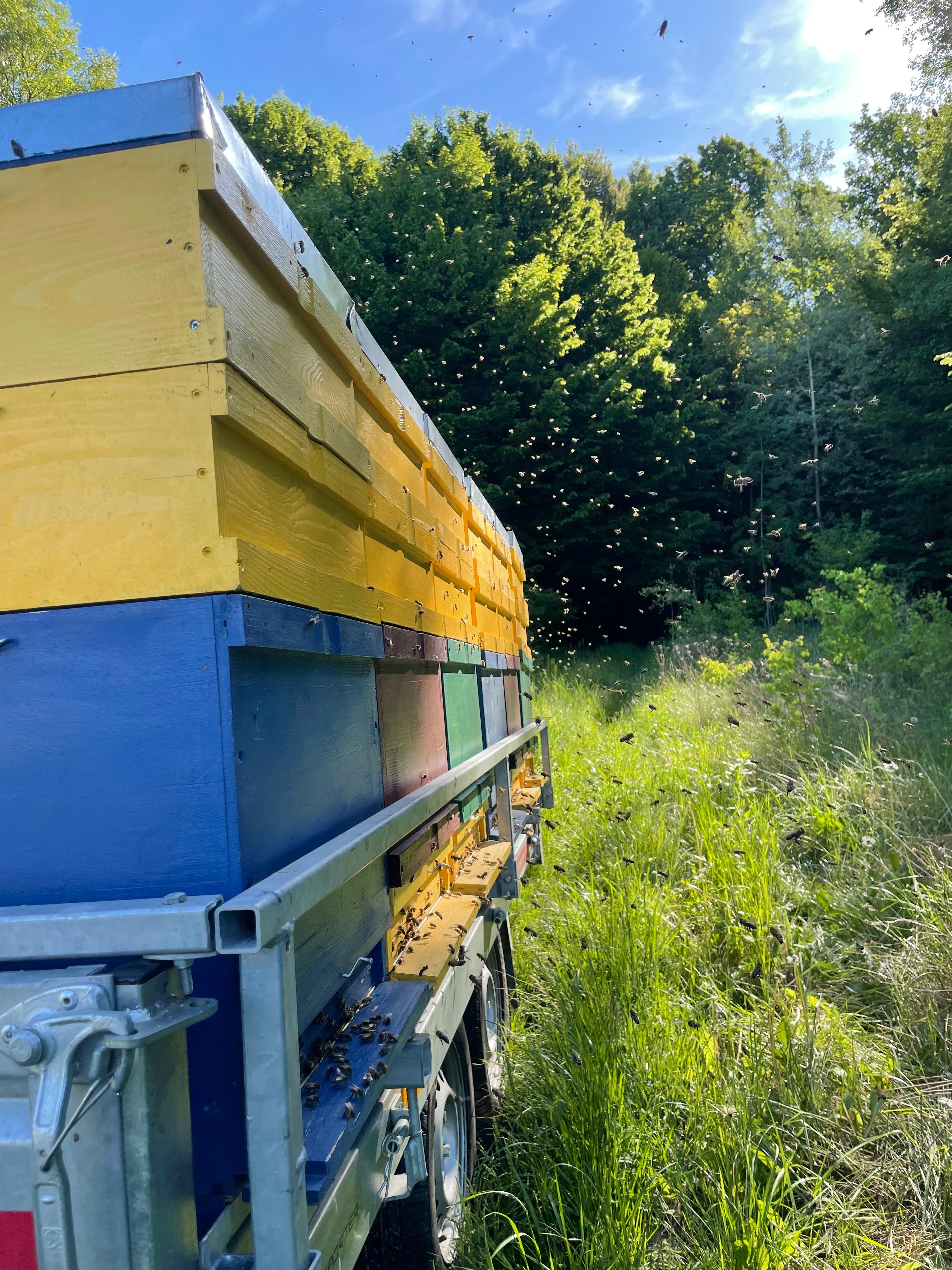 Vara: albinele stau la intrarea stupului și bat din aripi coordonat pentru a răci prin evaporarea apei. Un aer condiționat biologic complet eficient.